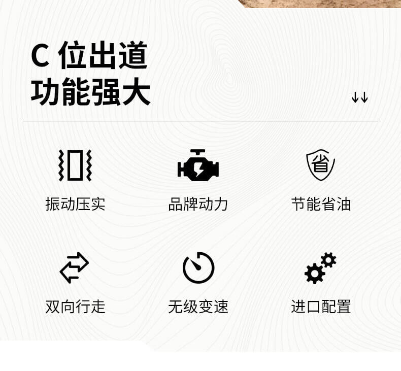 采用進(jìn)口液壓系統(tǒng),雙驅(qū)雙振,前后輪可單獨(dú)調(diào)節(jié)振動,亦可同時振動。液壓轉(zhuǎn)向,液壓驅(qū)動,液壓行走,液壓振動。進(jìn)口英國鉑金斯柴油機(jī)三缸水冷四沖程,動力強(qiáng)勁,性能穩(wěn)定。超快速度一小時可達(dá)12千米,無極變速。壓土,碎石,壓瀝青,壓回填土效果超乎想象。