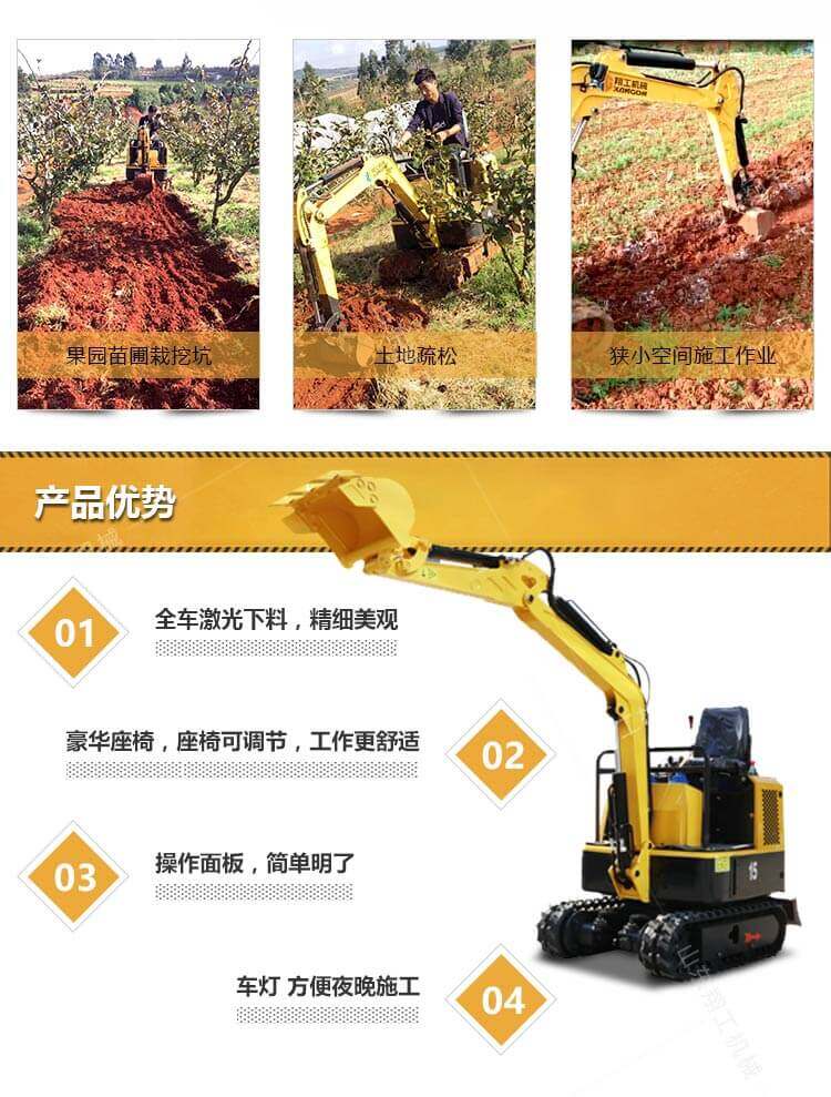小型挖掘機質(zhì)量輕、保養(yǎng)維修方便,具有獨特優(yōu)勢。由于其小巧、靈活、多功能和效率高等特點,深受用戶的歡迎。
