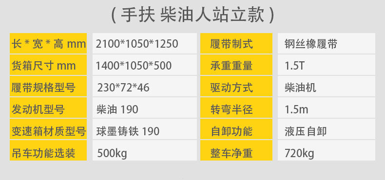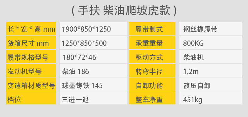 手扶式履帶運(yùn)輸車它是采用手扶式的方式駕駛,自動(dòng)靈活,安全可靠,可以在泥濘、結(jié)冰道路、沙漠、沼澤以及土質(zhì)松軟或氣候條件不太好的接近角和離地角行駛。它的性能穩(wěn)定,功能強(qiáng)勁,使用能力進(jìn)一步提高。運(yùn)載能力強(qiáng),爬坡能力大,操作簡(jiǎn)單,維修保養(yǎng)容易。