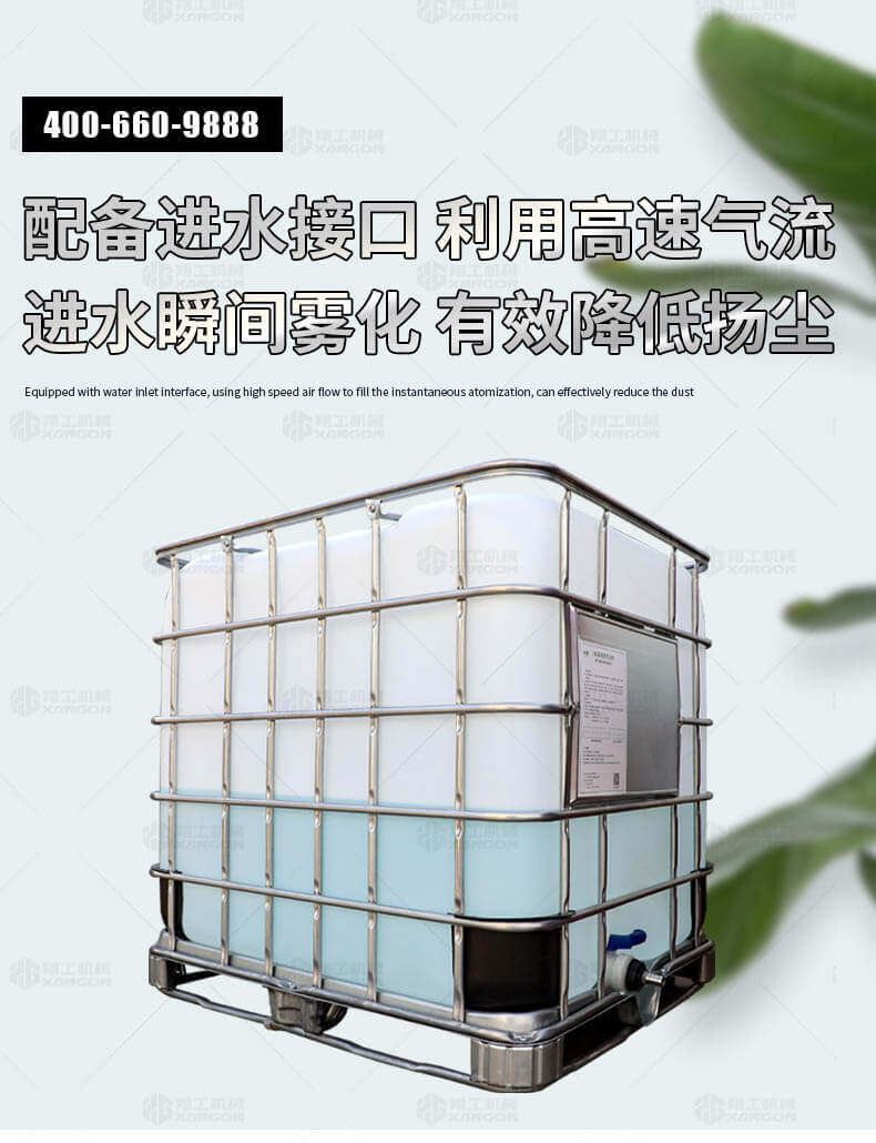 5、配備進(jìn)水接口,利用高速氣流將進(jìn)水瞬間霧化,可有效降低揚(yáng)塵。